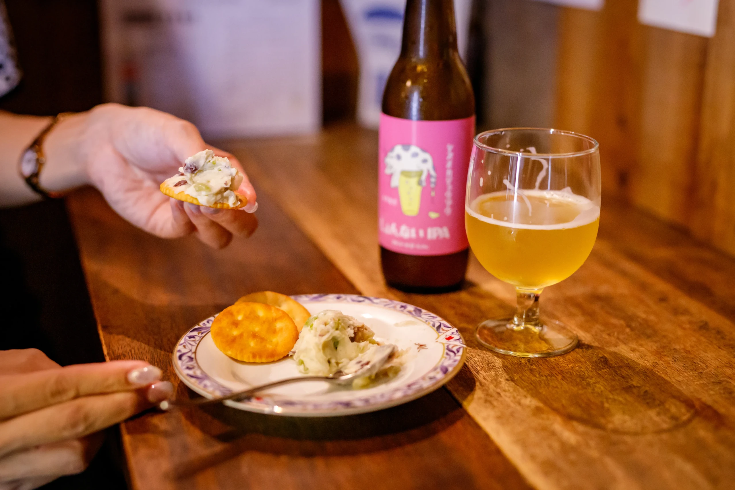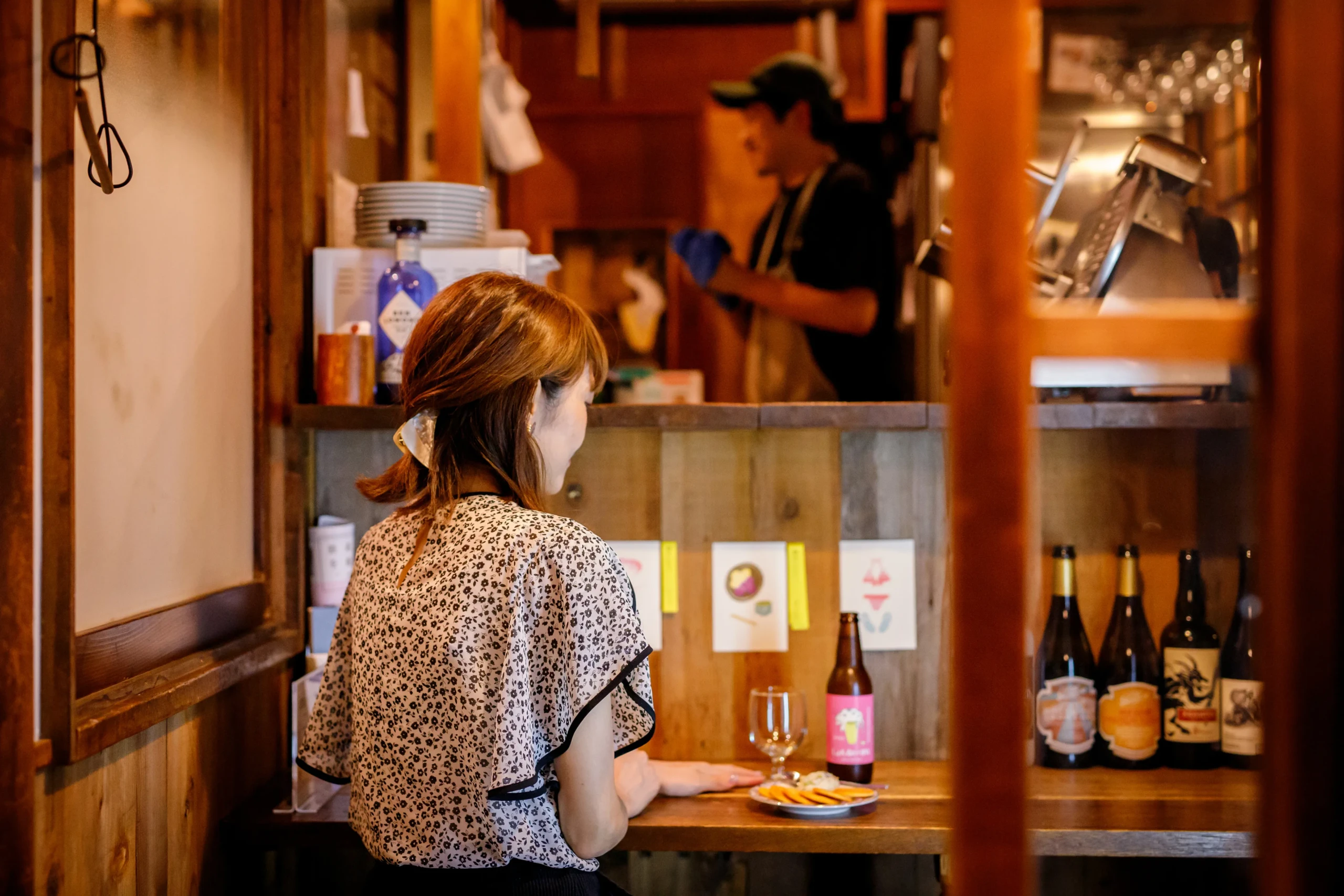 Once you are inside, check the blackboard for the daily tap list. Their most popular beer is the Yuzu Pils, a refreshing choice made with yuzu from Kawanehoncho and rice koji from Okabe. Other unique options include the fruity Shonnai IPA. You can choose between a 200ml small glass or a 400ml large glass, which makes it easy to try a few different styles.