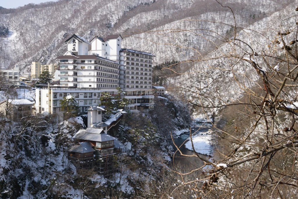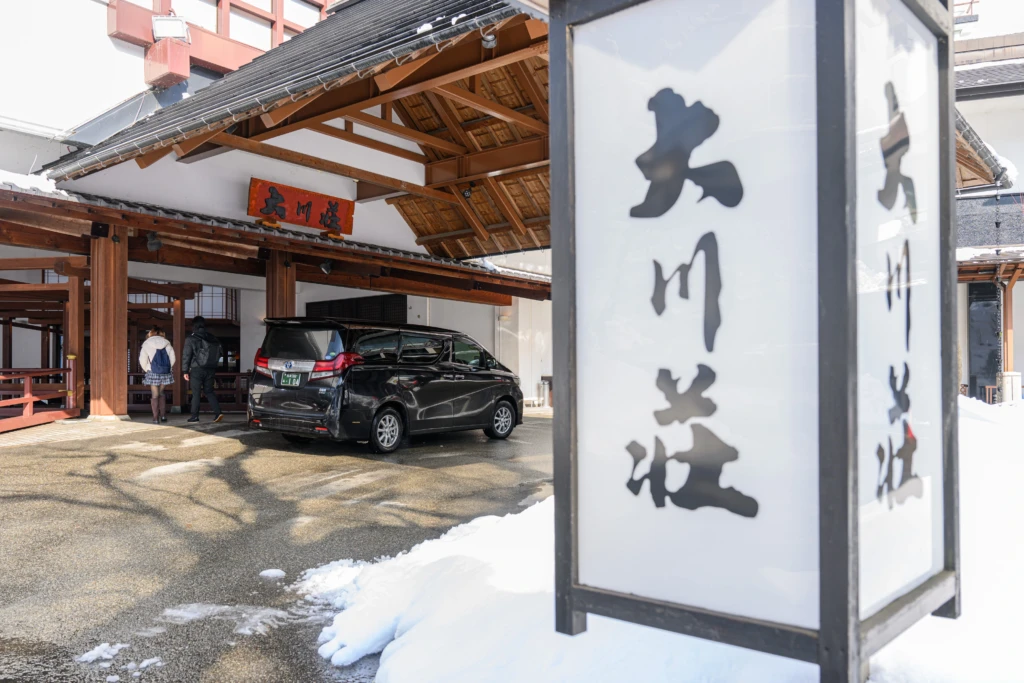 With the pleasant tiredness from skiing still lingering, we got back into our private car and headed to Ashinomaki Onsen, where our next stay awaited—Ookawaso.