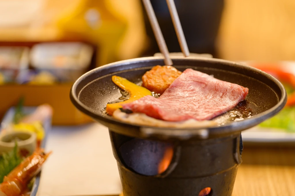 Lifting the Fukushima-grown Wagyu sirloin with chopsticks, you’re surprised by its satisfying weight. As it touches the hot iron plate, a soft sizzle fills the air. With the first bite, the meat melts effortlessly, and light, high-quality fat slowly releases, spreading smoothly across the palate.