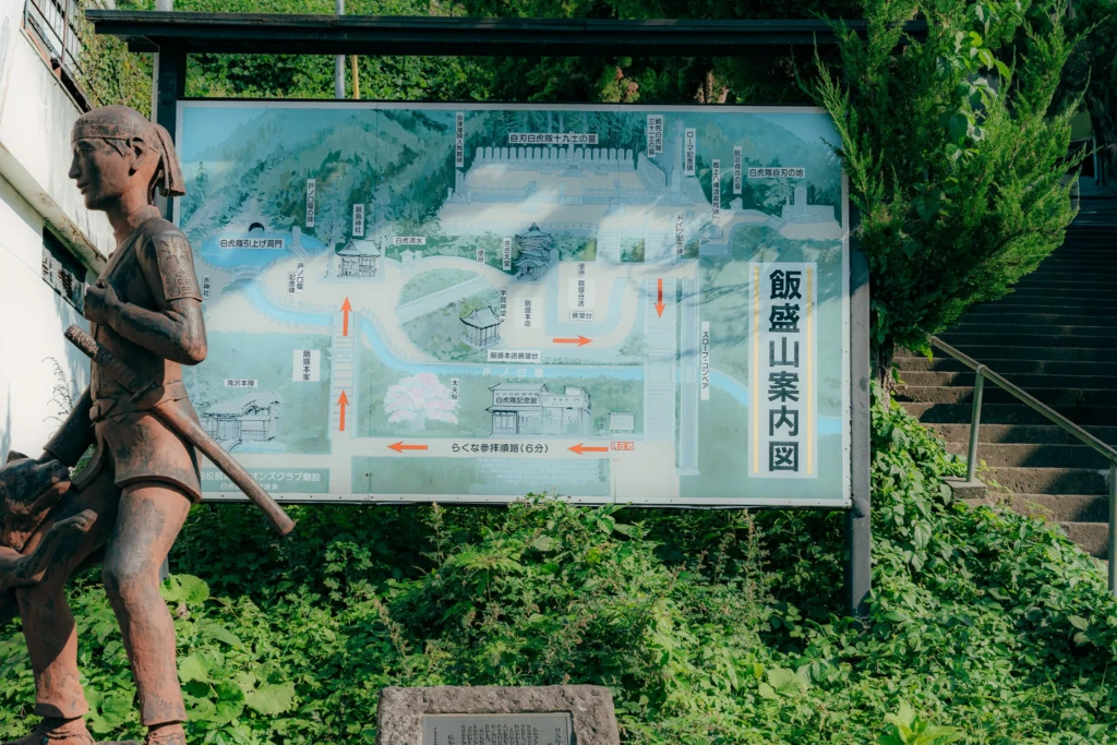 Mt. Imori is one of Aizu’s most iconic landmarks, known for its deep connection to the Byakkotai (White Tiger Corps). It sits just across the road from the ryokan, making it a perfect spot for a refreshing morning walk the next day.