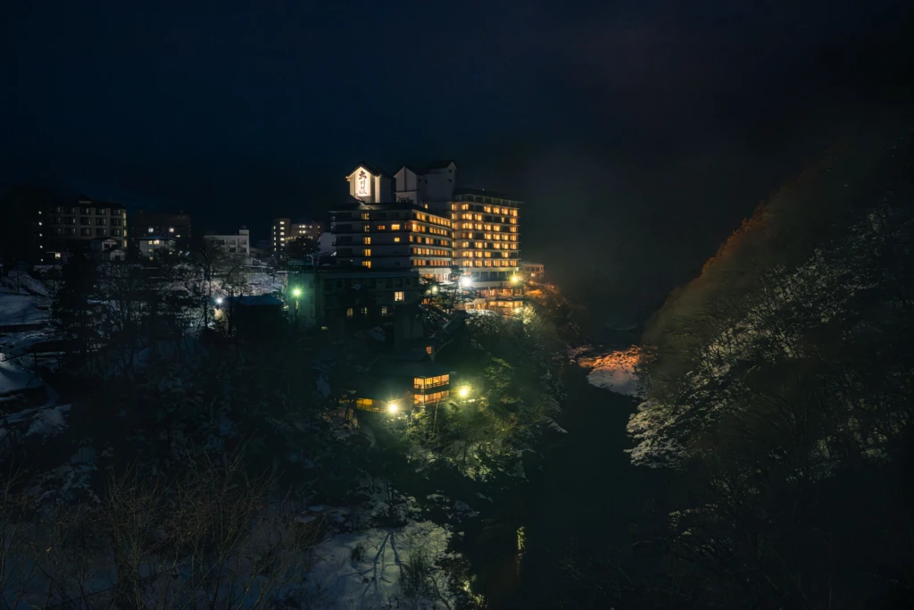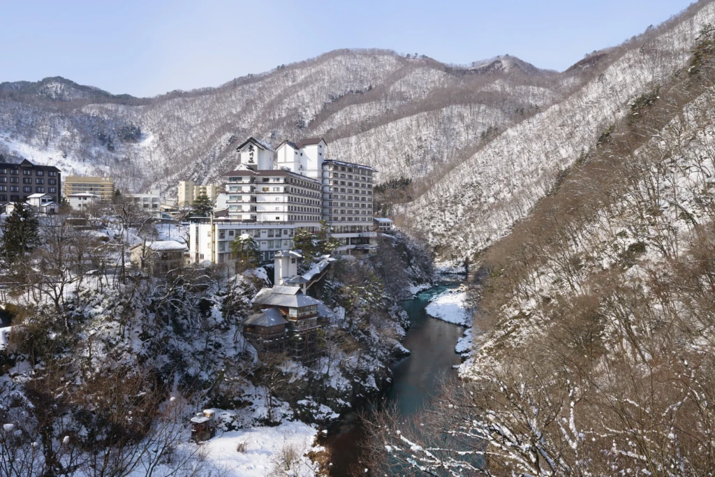 A hot spring retreat where guests can immerse themselves in the stunning beauty of the Aizu valley, featuring breathtaking open-air baths and exquisite cuisine crafted from local seasonal ingredients.