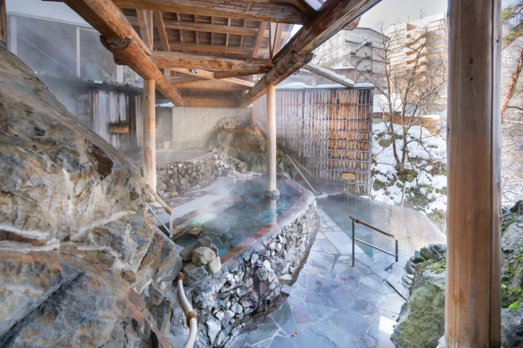 Our water is an alkaline simple hot spring, often called ‘beautifying water.’ It has moisturizing effects that leave your skin feeling soft after a soak. Because it is gentle and has almost no scent, it is suitable for all ages and very easy for everyone to enjoy.