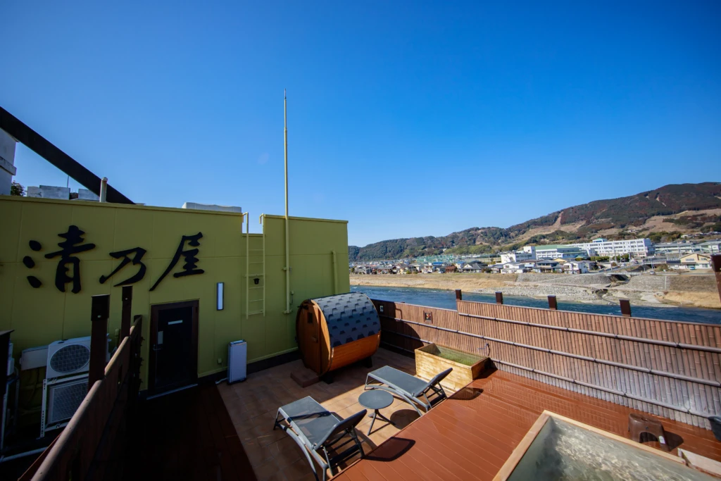 At Seino-ya, guests can experience the increasingly popular Finnish-style sauna. In 2023, a barrel sauna was added to the rooftop private open-air bath Fugetsu. Though compact, it is fully authentic and available for private use at ¥4,000 for 50 minutes. After working up a sweat, cool down in the open air with a breeze from the Chikugo River, then plunge into the onsen cold bath. Alternating between sauna and hot spring leaves both body and mind feeling completely refreshed. The special suite Mino, mentioned earlier, also includes a private barrel sauna, allowing guests to indulge in unlimited sauna and hot spring sessions at their leisure.