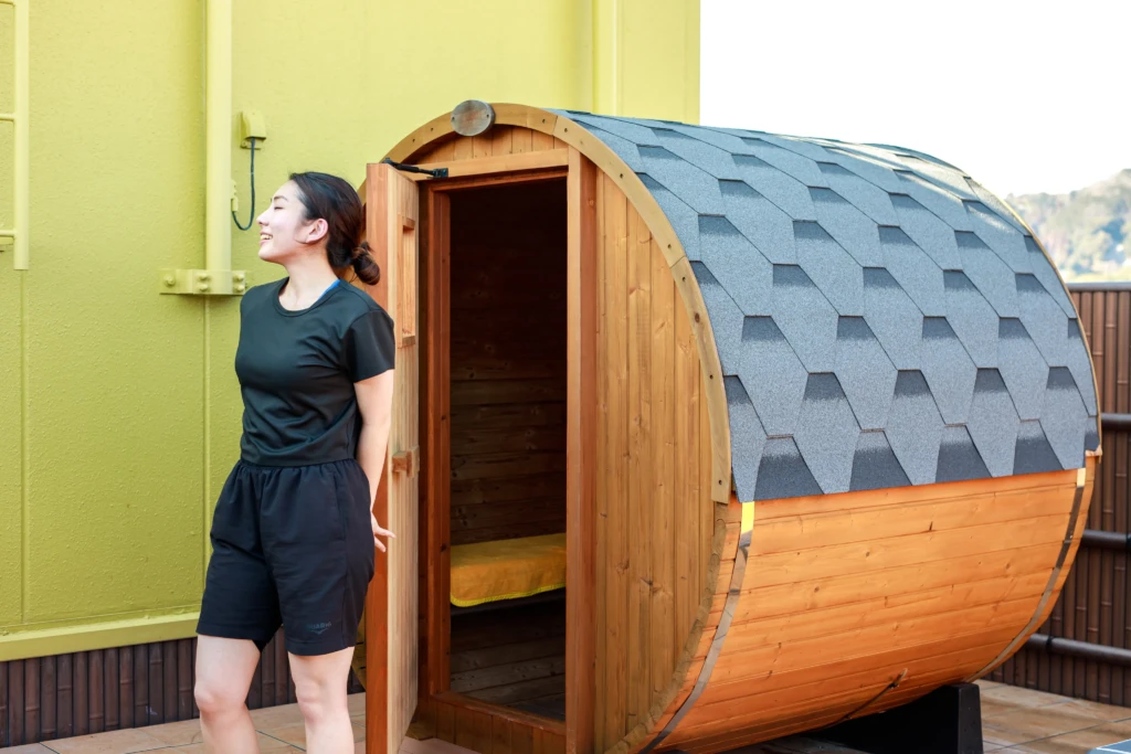 On the rooftop private open-air bath “Fugetsu,” you can enjoy an authentic Finnish-style barrel sauna. After a good sweat, cool down outside while feeling the breeze from the Chikugo River, or relax in the onsen cold bath. Moving between the sauna and hot spring leaves you feeling refreshed and recharged.
