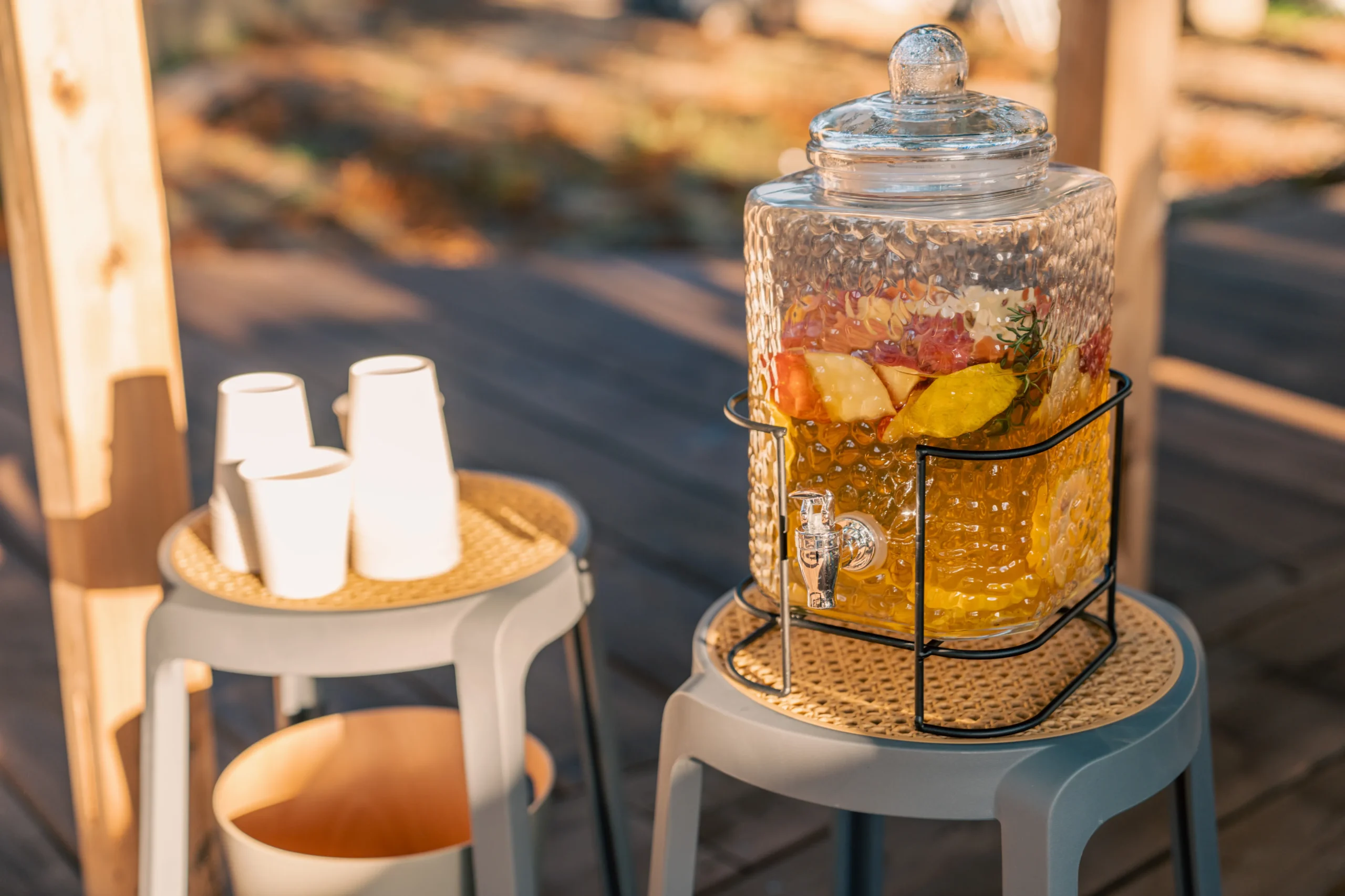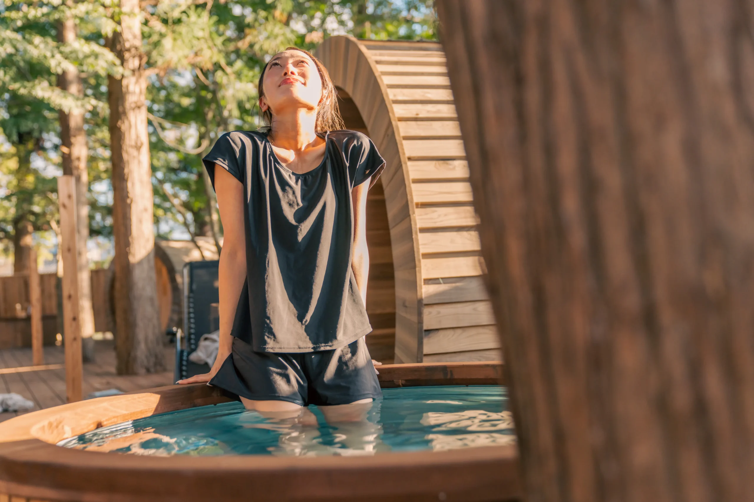 體驗時間為2小時30分鐘,建議可多次循環享受「薪火桑拿 → 井水冷泉 → 休息」的流程。當在桑拿中以自助澆水(ロウリュ)充分出汗後,再投入約15℃的井水冷泉中,全身瞬間被清涼包圍,徹底「整う」。桑拿與冷泉之間的間隔或外氣浴時,別忘了喝一口免費提供的「排毒水」,隨時補充水分。