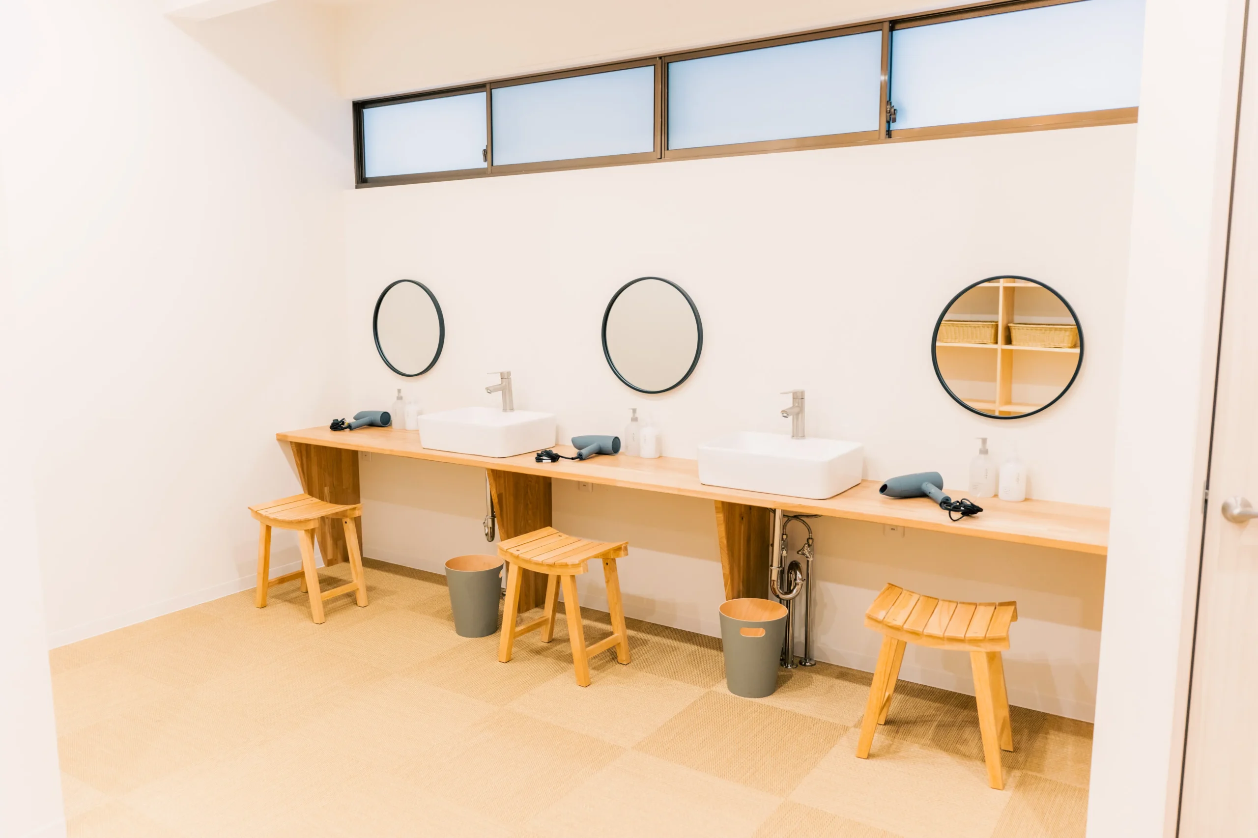 改建自古民家的主屋內設有更衣室、淋浴間與休息空間,館內還提供以當季水果製成的免費「桑拿排毒水」。榻榻米鋪設的休息室保留了日式原貌,可以自在地小憩。