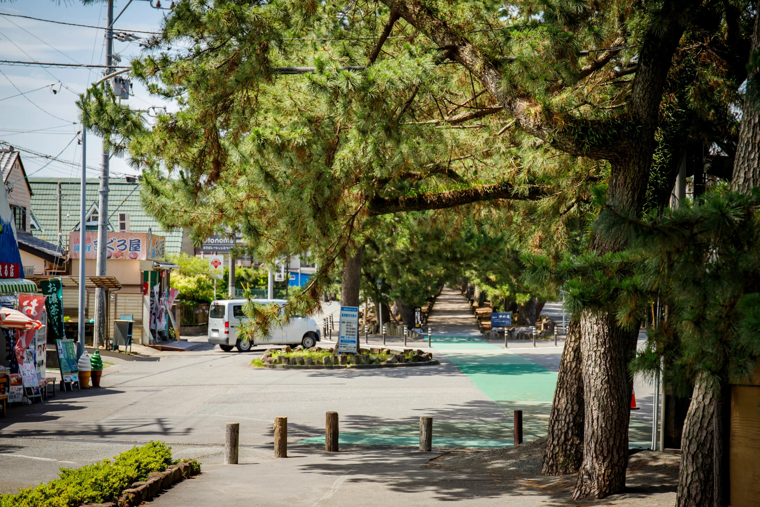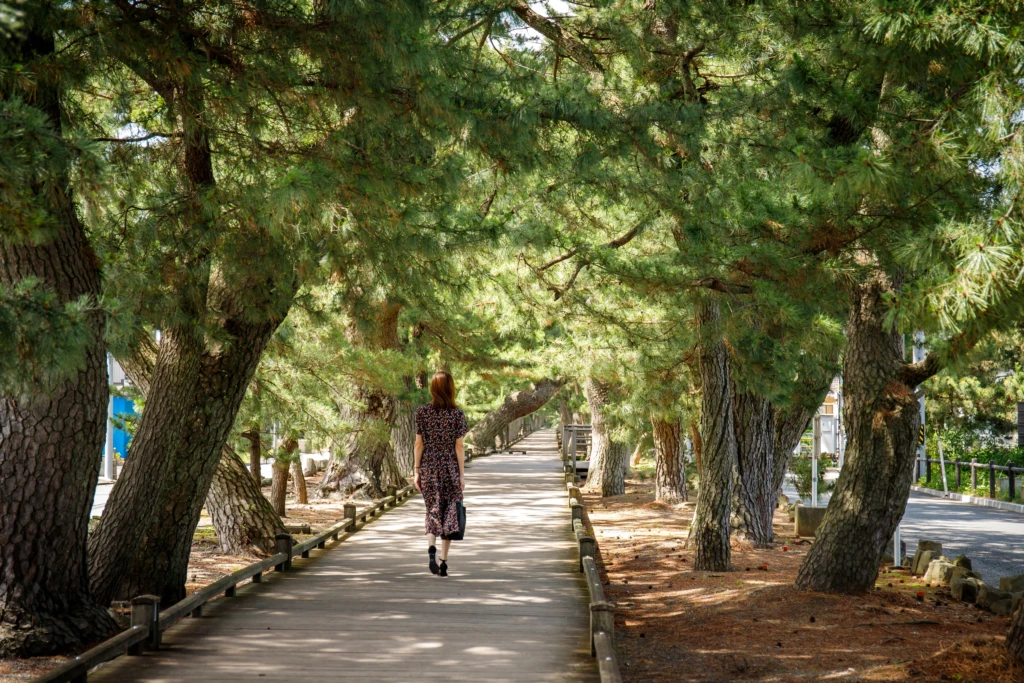 如果時間允許,也很推薦走一段從御穗神社延伸到羽衣之松的「神之道」。這條約500公尺的參道被樹齡數百年的老松包圍,氛圍安靜而莊重,走在其中,很自然就會慢慢靜下來。
