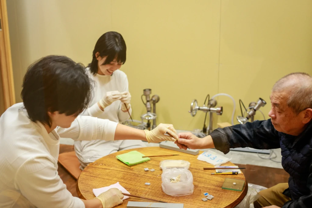 體驗從圍坐在低矮的圓形餐桌前開始,與指導的職人一同坐在坐墊上。隨著姿勢慢慢安定下來,也彷彿讓心情一同沉靜,準備迎接這段與傳統工藝正面相遇的時光。