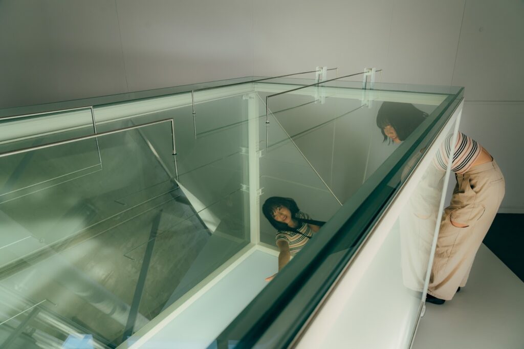 展廳的結構各自獨立,每走入一間,彷彿進入全新的世界。有人穿梭於地板下的裝置中、有人被顛倒視覺的藝術迷惑、有人沉入無聲的黑暗空間……在探索的過程中,邊思考創作者的意圖,邊被層層驚喜包圍,就像徜徉於充滿未知的遊樂園,興奮又期待。