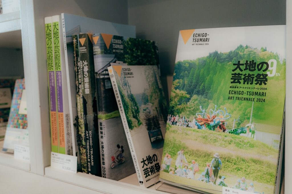 欣賞完作品後,不妨前往紀念品區逛逛。這裡擺滿了只在新潟才能買到的雜誌、以及與展品相關的各式周邊,非常豐富。我也忍不住入手了美術館限定的零食和《大地藝術祭》相關書籍。