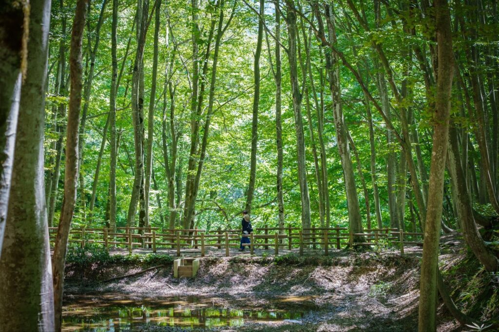 令人驚訝的是,這片林並非人工栽種。大正末期曾為木炭全數砍伐,翌年春天卻自行萌芽重生。了解這段背景後踏入森林,便能感受到「復甦之地」的生命力,而非單純觀光景點。