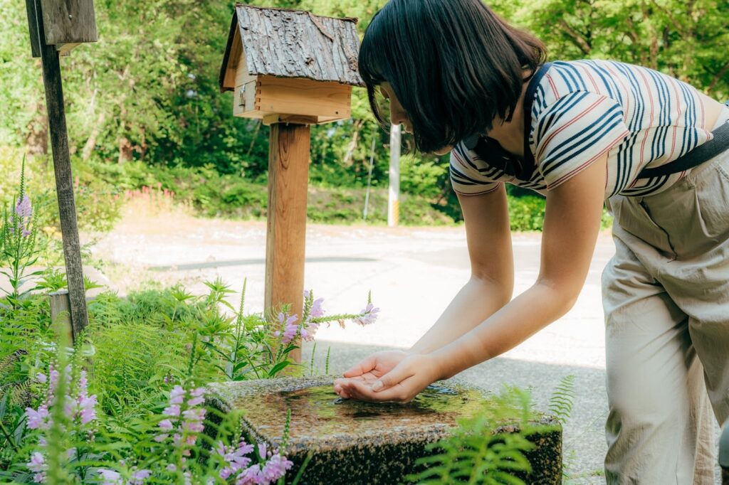 入口旁的「柳清水」,曾是村山家釀酒用水。試舀一口,驚人的柔和清涼,比便利商店礦泉水好喝十倍。