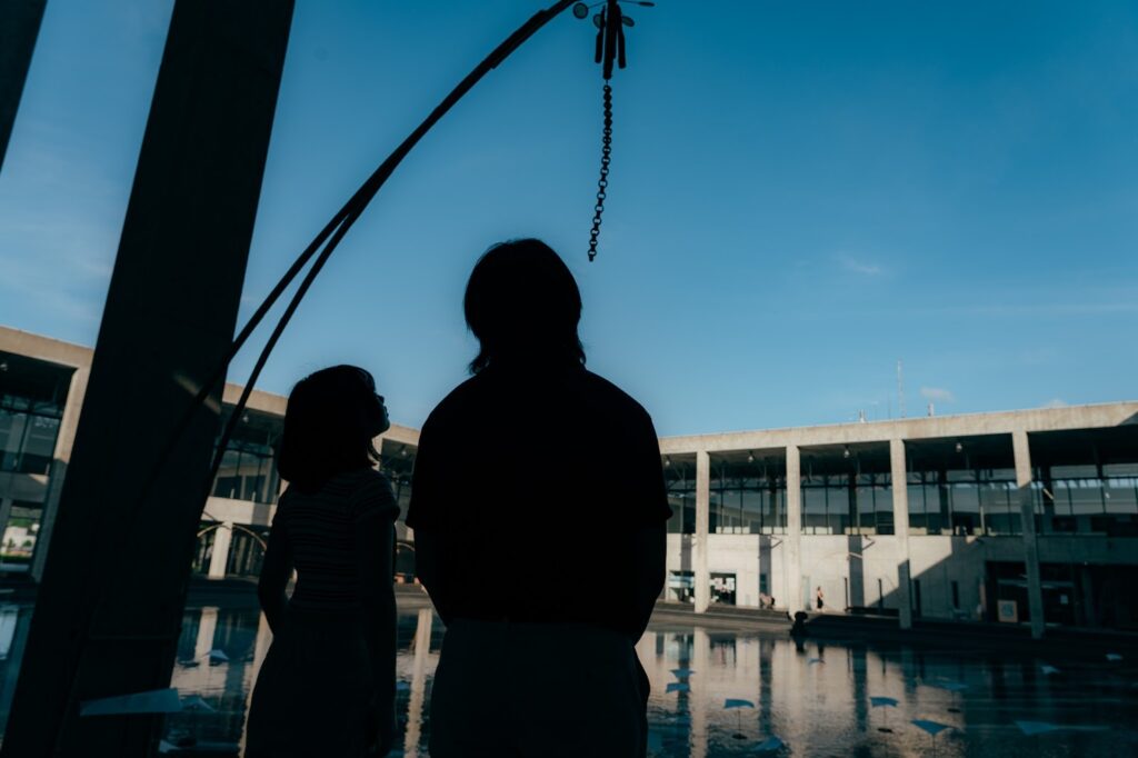 微風拂過,水面輕輕蕩漾,映出的天空與建築也隨之慢慢扭曲。僅僅靜靜凝視,心便逐漸沉澱下來,像被時光輕輕撫慰。