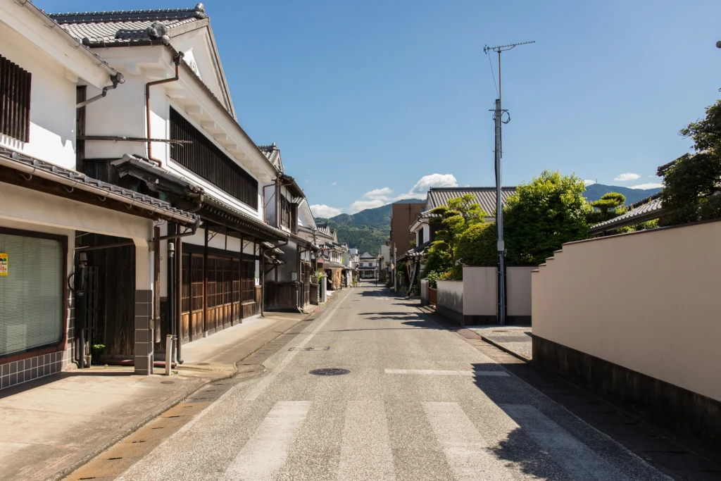 這裡保留著許多江戶後期至明治時期建造的商家與土藏,粉刷潔白的牆面與厚重的町家建築沿街靜靜排列。作為昔日的宿場町與在鄉町繁榮一時的歷史,如今仍以原貌留存,是一處極為珍貴的區域。