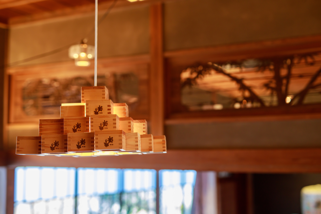 踏入室內,映入眼簾的是以和風設計為基調、細心維護且整潔安靜的空間。由木枡拼接而成的燈飾灑下柔和光線,僅僅站在那裡,便彷彿被酒文化的時間所包圍。