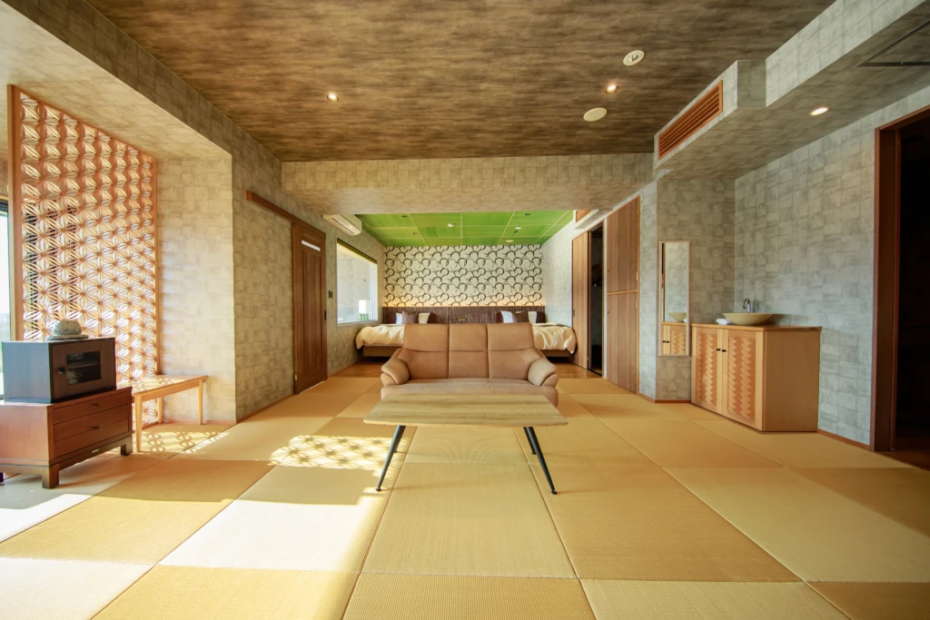 這次入住的是附露天風呂與室內風呂的特別客房。房型設計適合多人同住,整體空間寬敞開闊。無論是好友旅行或家庭出遊都十分合適,各種旅行形式都能自在對應,讓大家盡情相聚。