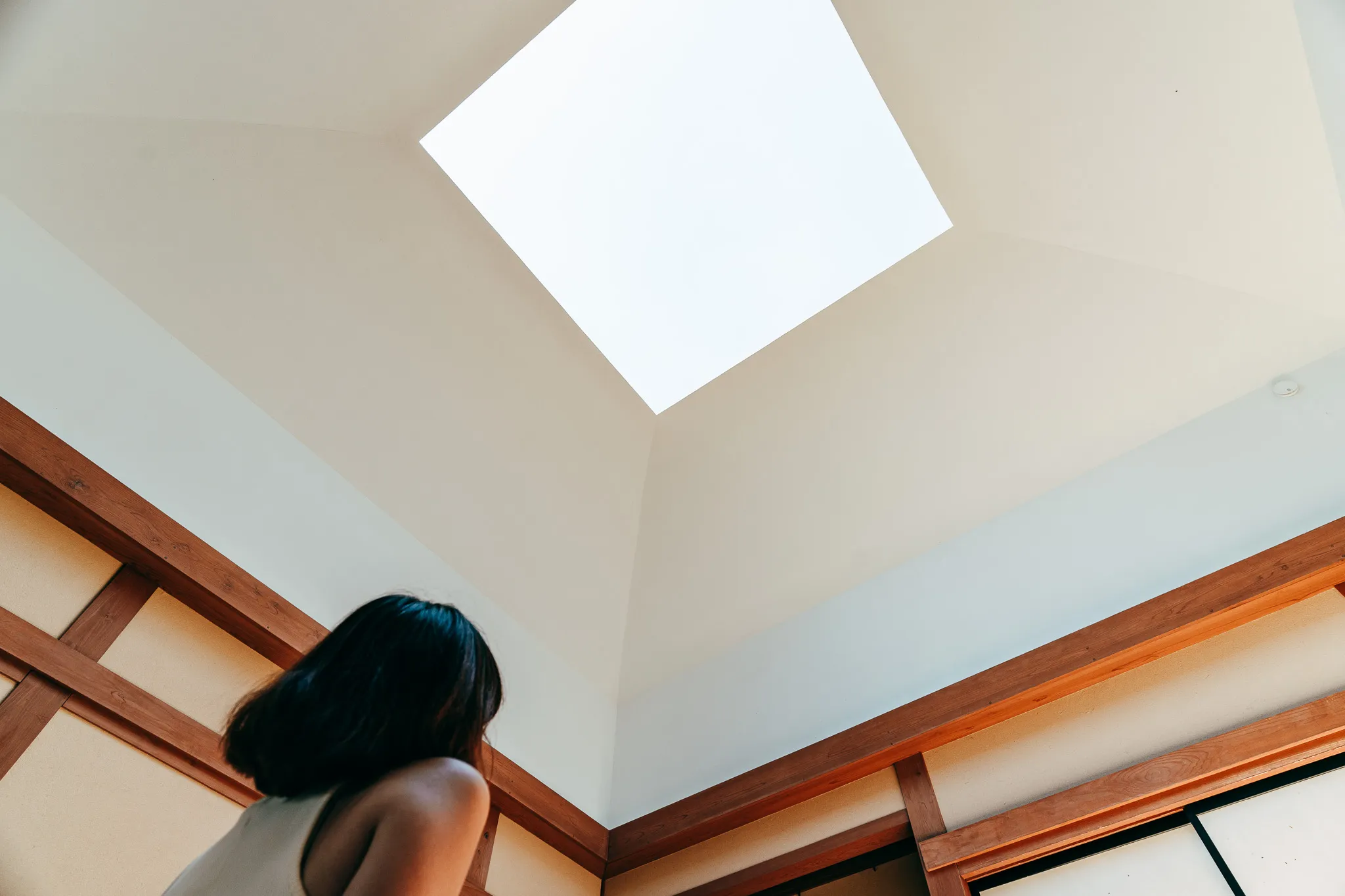 二樓天花板可開合,當屋頂打開時,天空如同畫框般展現在眼前,陽光、雲影與微風在其中流動,令人沉浸於光與空間的藝術體驗。