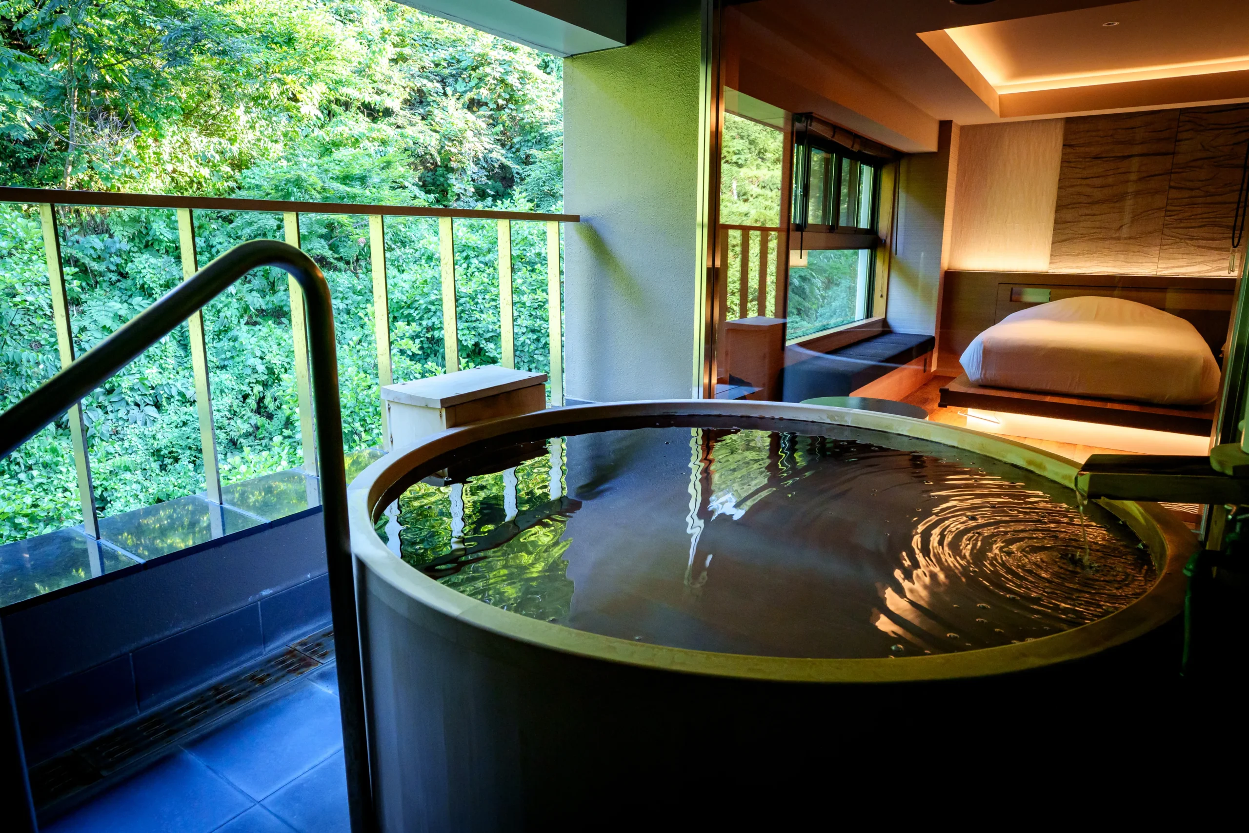 客室は和洋様々なタイプが全8室。うち6室は源泉掛け流しの露天風呂付きで、残り2室はシンプルな洋室(バスなし)となっています。いずれの部屋も現代的な快適さと里山の温もりを両立するよう工夫されており、現在の宿主である四代目となってから順次リノベーションが施され、スタイリッシュで居心地の良い空間に整えられました。