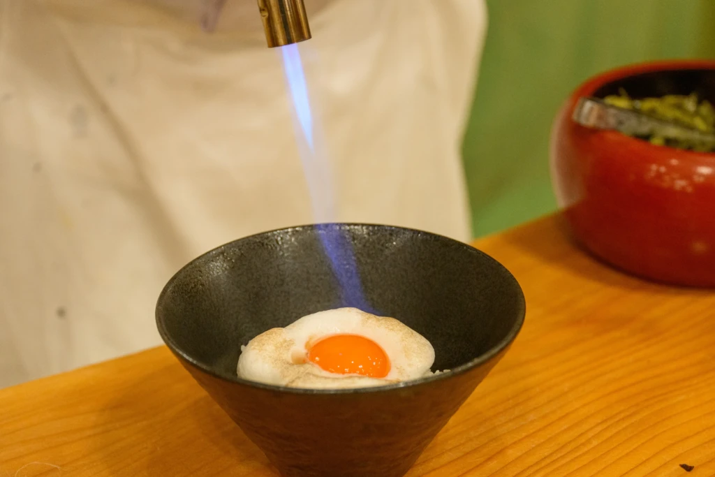 特に印象に残るのがライブキッチンの「ふわふわ卵かけごはん」。メレンゲ状に泡立てた白身に、会津産地鶏の濃厚な黄身と海苔をのせていただく一品で、軽いのに満足感がある。