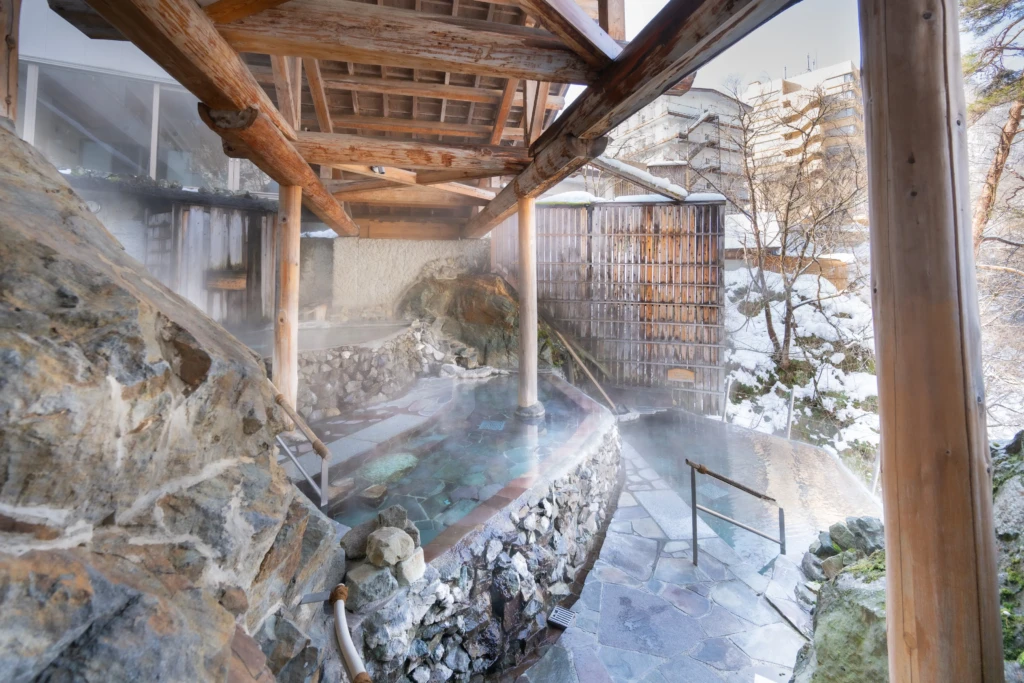 さらに、清水の舞台を模したような「空中露天風呂」もあり、到着するまでに階段を上る小さな“儀式”がある分、湯に浸かった瞬間の開放感が強い。泉質はカルシウム・ナトリウム・硫酸塩・塩化物泉で、湯温も高め。冷えや疲れが抜けていく感じが、体感として分かりやすいタイプです。