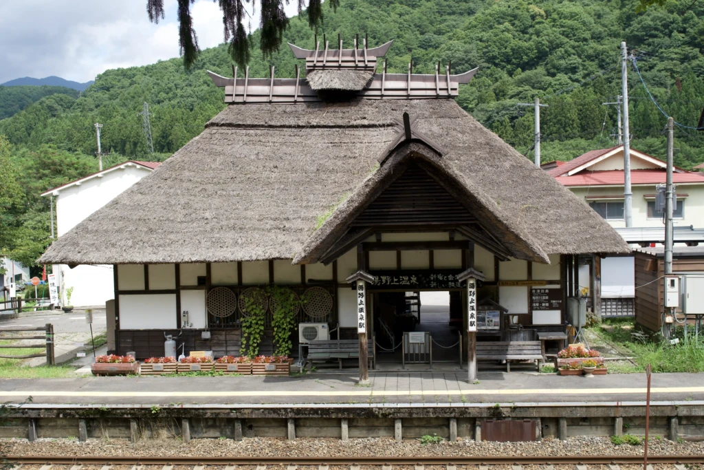 福島県南会津郡下郷町にある湯野上温泉駅は、日本でも珍しい茅葺屋根の駅舎を持つ温泉駅。どこか懐かしく、まるで物語の世界に迷い込んだかのような風景が広がります。駅前には足湯も整備され、列車を待つひとときに温泉のぬくもりを気軽に楽しめるのも魅力。