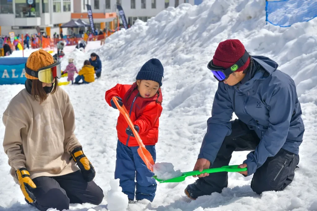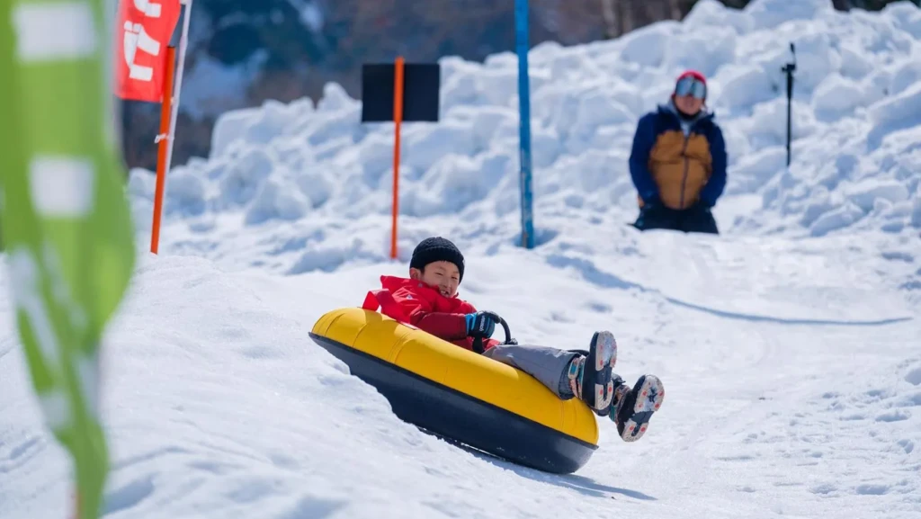 苗場スキー場の魅力は、滑走エリアだけにとどまりません。 敷地内には「わくわくファミリースノーランド」が設けられており、スキーをしない子どもでも雪遊びを楽しめる空間が整っています。雪に触れ、遊びながら過ごす時間は、家族旅行の思い出づくりにも向いています。