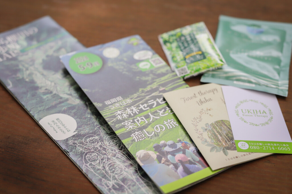 森林セラピー: 生理的な研究をもとに心身の状態を整える、うきはの森歩き。木々の匂いや足元の土の感触に意識を向けてゆっくりと進むことで、自然と呼吸が深くなり、内側の感覚が研ぎ澄まされていくのを体感します。