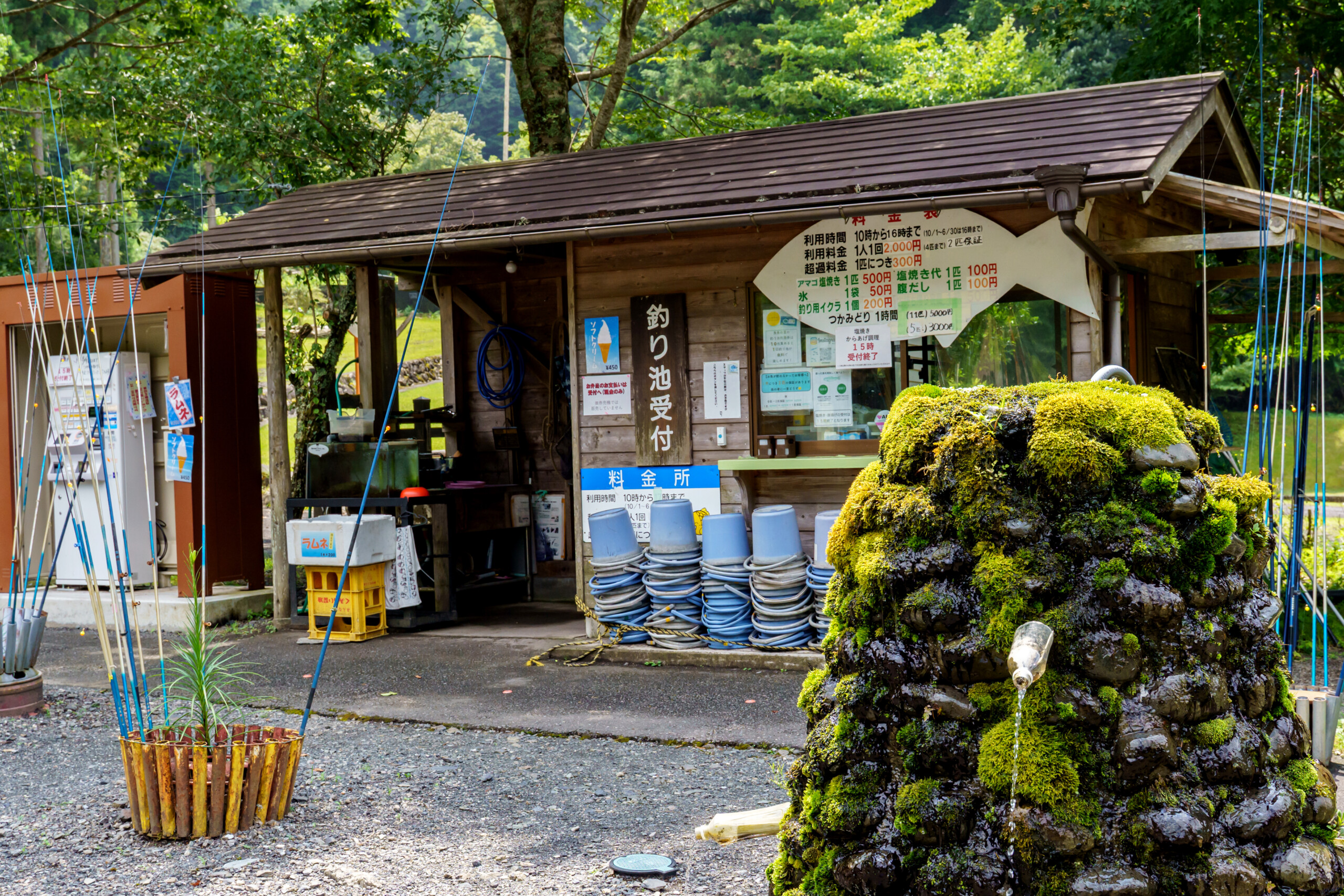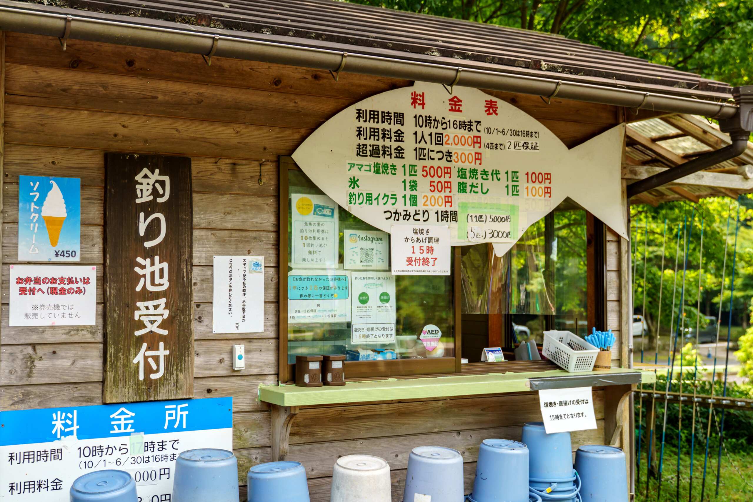 ・料金:入場料:中学生以上 300円、小学生 200円 / 貸し竿(エサ付):300円 / ヤマメ代:300円(1匹) / 焼き代:150円(1匹)など